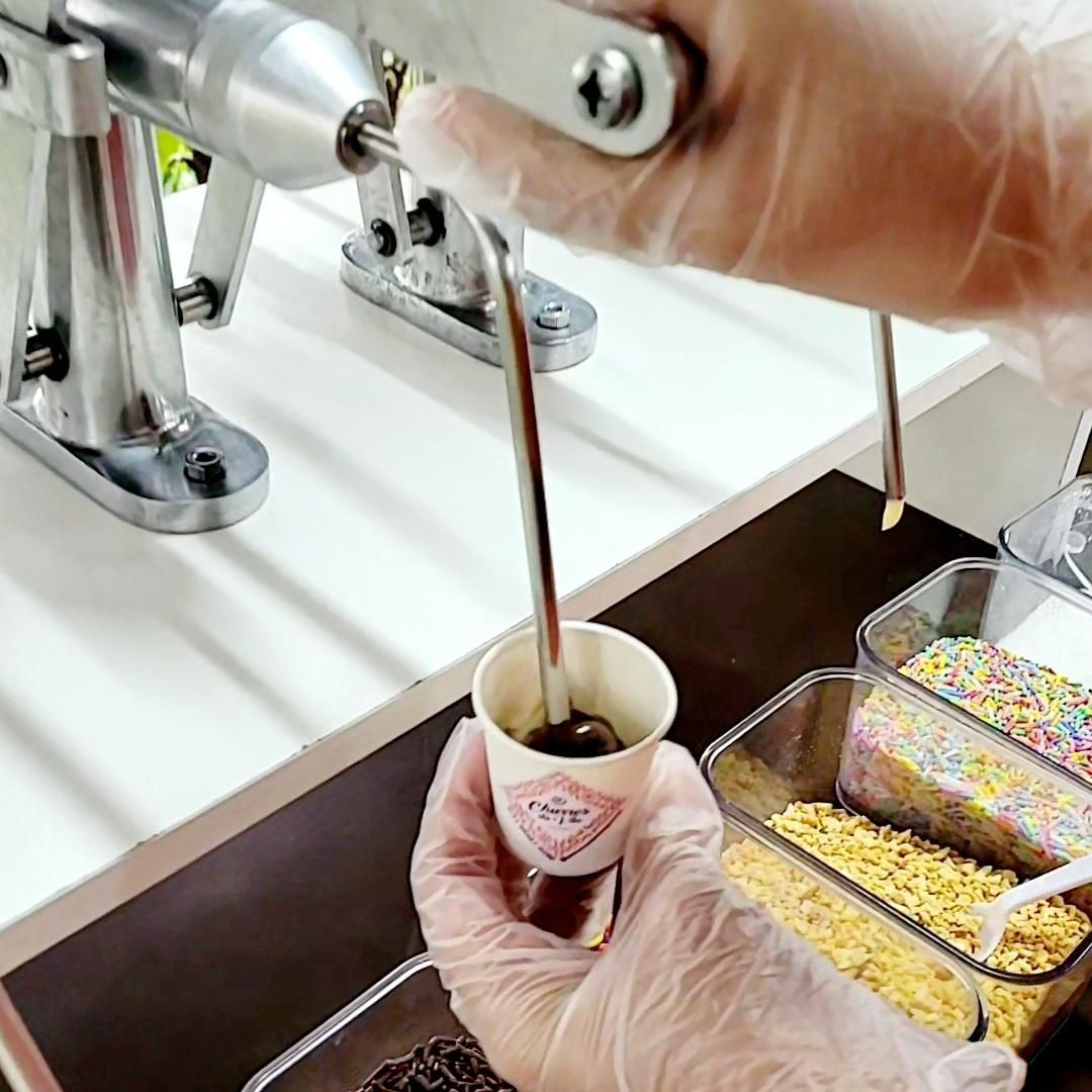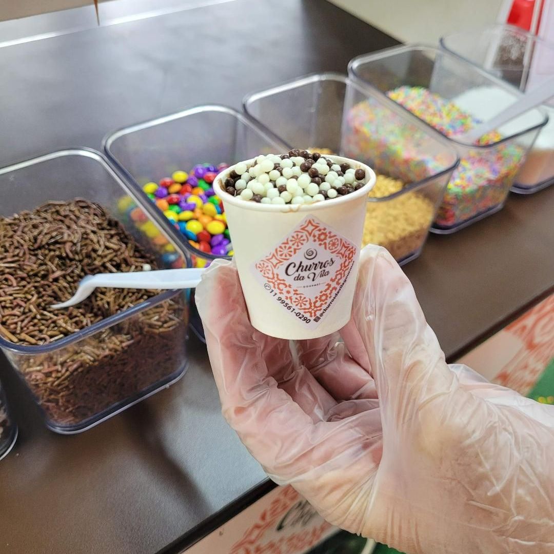 É uma deliciosa versão do carrinho de brigadeiros, em que seu convidado pode ter a divertida experiência de se servir, colocando o sabor que desejar no copinho e mais seu confeito predileto. Terá sempre uma atendente para servi-lo, caso seu convidado prefira.